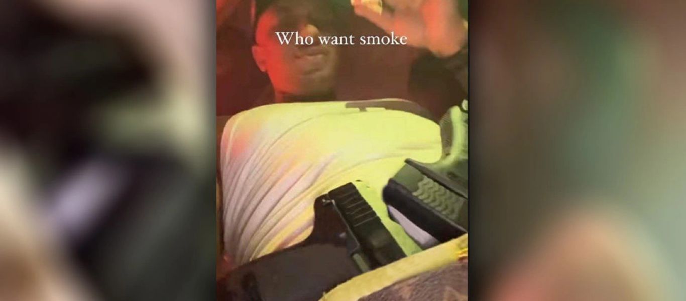 Μάλιστα, ακόμα μεγαλύτερη αίσθηση έχει προκαλέσει το γεγονός ότι το ένα από τα όπλα αυτά, παραπέμπει σε όπλο όπως αυτά που χρησιμοποιούν στην Αστυνομία, καθώς διακρίνεται το εθνόσημο. Στις εικόνες φαίνεται να κυκλοφορεί με τα όπλα μέσα σε κλαμπ και να καπνίζει ατάραχος.