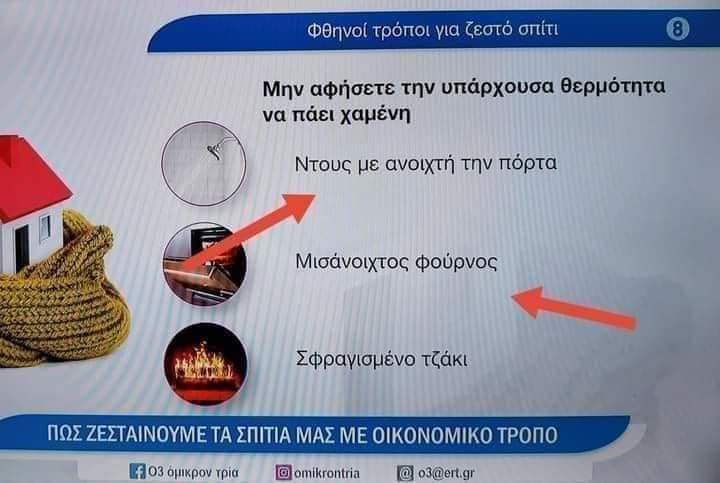 «Ντους με ανοιχτή την πόρτα, μισάνοιχτους φούρνος, σφραγισμένο τζάκι» μας προτείνει η ΕΡΤ μετά τους παραφουσκωμένους λογαριασμούς.