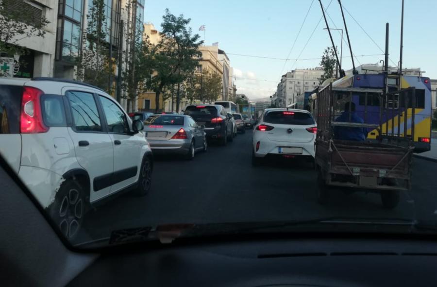 Στην Πανεπιστημίου επικρατεί κυκλοφοριακό χάος καθώς στην δεξιά λωρίδα γίνονται εργασίες ασφαλτόστρωσης και η αριστερή έχει καταληφθεί από μηχανήματα μια και συνεχίζονται οι εργασίες για το πλέον αποτυχημένο έργο με την υπογραφή του δημάρχου Μπακογιάννη, αυτί του δήθεν «Μεγάλου Περιπάτου».