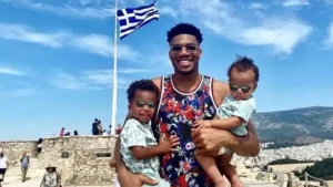 Ο Αντετοκούνμπο μαζί με τους γιους του, τον Λίαμ Τσαρλς και τον Μάβερικ Σάι βρέθηκαν στην Ακρόπολη κι ανέβασε τη σχετική φωτογραφία στο Instagram με τη σημείωση: «Η ετήσια επίσκεψή μας στην Ακρόπολη».