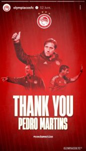 «Ευχαριστούμε, Πέδρο Μαρτίνς», αναφέρει το μήνυμα της ΠΑΕ Ολυμπιακός.