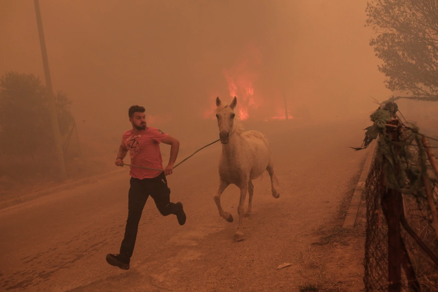Ένας κάτοικος καταβάλει τεράστια προσπάθεια για να σώσει ζώα από τη μεγάλη πυρκαγιά που έχει ξεσπάσει στην περιοχή της Φυλής.
