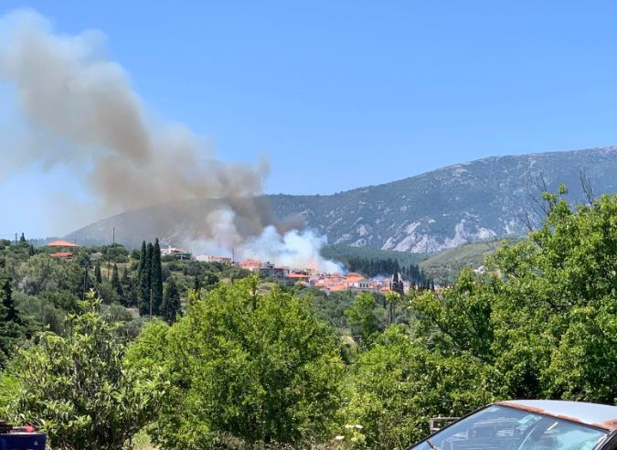 Στην περιοχή όπως αναφέρει η Πυροσβεστική πνέουν άνεμοι έντασης 3 έως 5 μποφόρ.