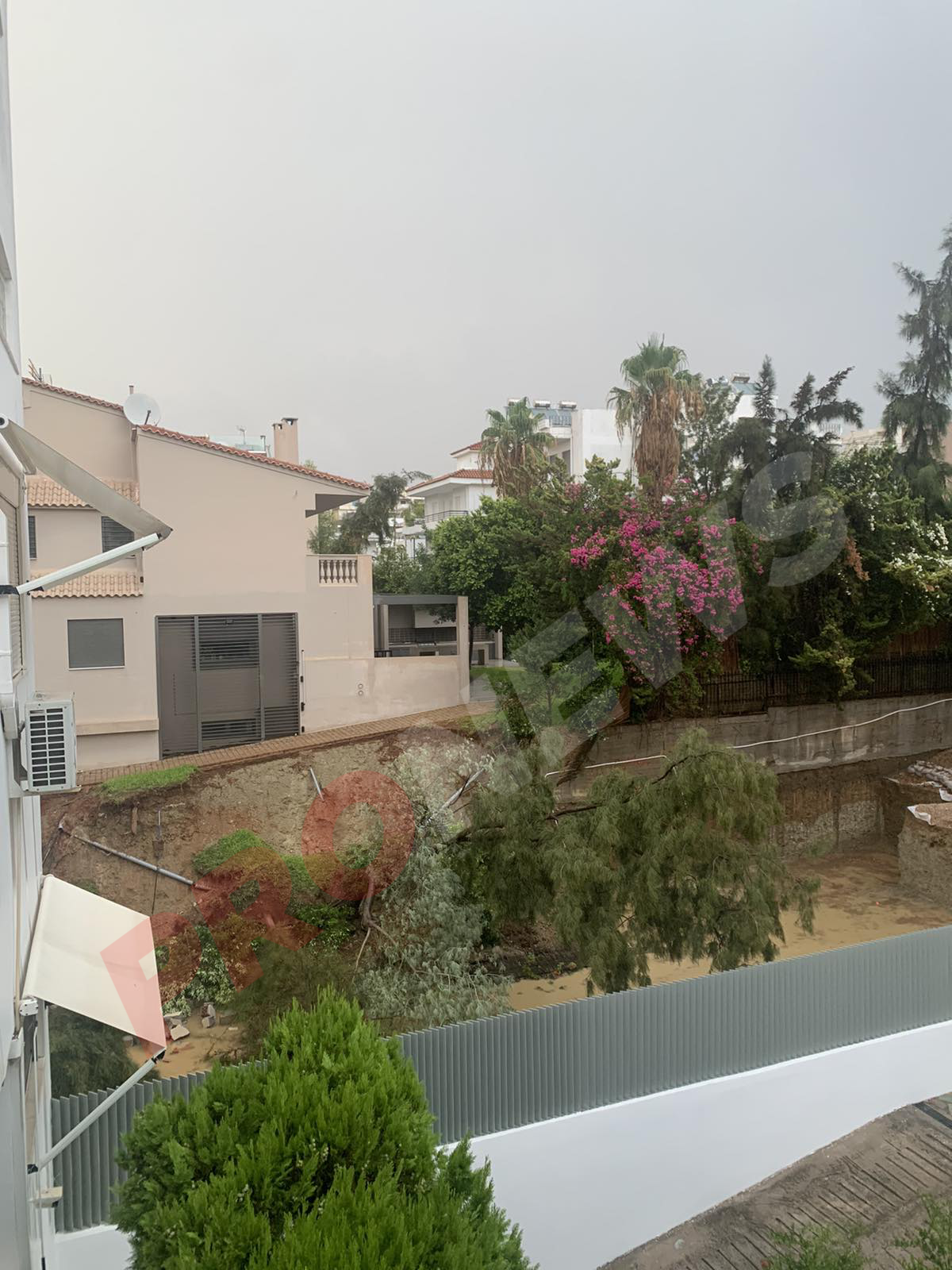 «Στον αέρα» βρίσκεται ένα συγκρότημα μεζονετών και μια πολυτελής βίλα στα Πηγαδάκια της Βούλας μετά την χθεσινή νεροποντή, δημιουργώντας μεγάλο κίνδυνο για τους ενοίκους τους.