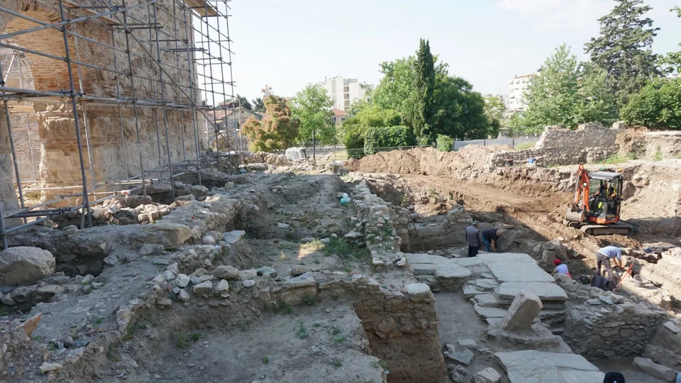 Σε όλη την έκταση του σκάμματος, το οποίο έχει διαστάσεις 21×13μ. και απαιτούμενο βάθος θεμελίωσης περί τα 3.70-4μ. βρέθηκαν αρχαία κατάλοιπα σε αλλεπάλληλες φάσεις. Μεταξύ των άλλων αποκαλύφθηκαν τμήματα λιθόστρωτης οδού σε δύο επάλληλα στρώματα που οδηγούσε από δυτικά προς το Μπεζεστένι, στρώμα ταφών του α’ μισού του 14 ου αι., κτιριακά κατάλοιπα οθωμανικής, υστεροβυζαντινής και μεσοβυζαντινής εποχής, μικρό εργαστήριο πιθανότατα χύτευσης μετάλλων και πλήθος κινητών ευρημάτων, όπως κεραμική, νομίσματα, μεταλλικά αντικείμενα, αρχιτεκτονικά μέλη κ.ά.