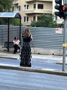 Στη συνέχεια περιφερόμενη στους δρόμους, έμοιαζε χαμένη και έκατσε σε ένα παγκάκι μιλώντας ακατάπαυστα στο τηλέφωνο.