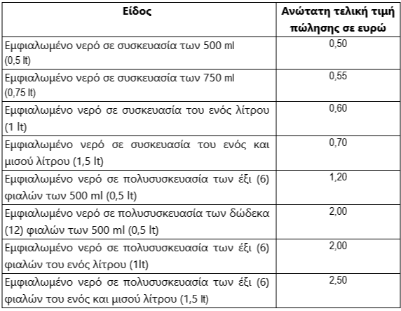 Το αποτέλεσμα είναι ότι το πλαφόν ορίζει τις τιμές της αγοράς που ισχύουν ήδη για το εμφιαλωμένο νερό ενώ αν ανατρέξει κανείς στα e-shop των σούπερ μάρκετ θα διαπιστώσει ότι υπάρχουν λόγω προσφορών τιμές αγοράς μικρότερες από το πλαφόν που επέβαλε το υπουργείο Ανάπτυξης!