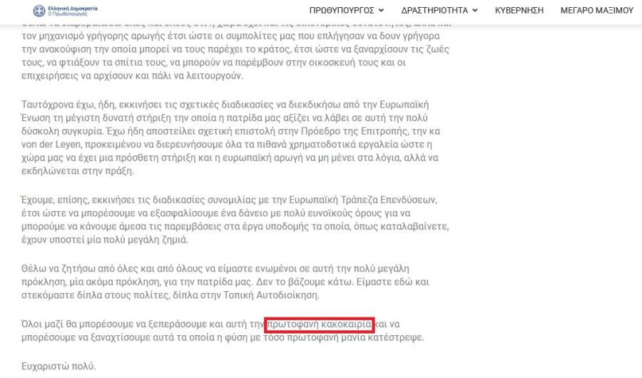 Το Μέγαρο Μαξίμου έφτασε μέχρι και στο σημείο να αλλάξει τις δηλώσεις του πρωθυπουργού Κυριάκου Μητσοτάκη για τις πλημμύρες!