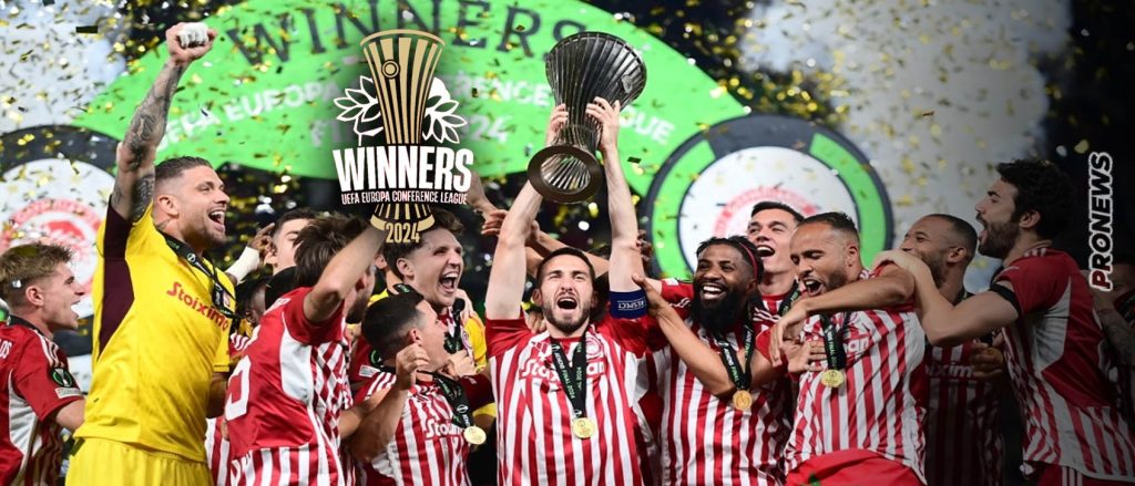 PRONEWS.GR / Διεθνές Ποδόσφαιρο Ελληνικός θρίαμβος: Ο Ολυμπιακός πήρε το Conference League! – Η πρώτη ελληνική ομάδα που σηκώνει στο ποδόσφαιρο ευρωπαϊκό κύπελλο! 29.05.2024 | 21:49