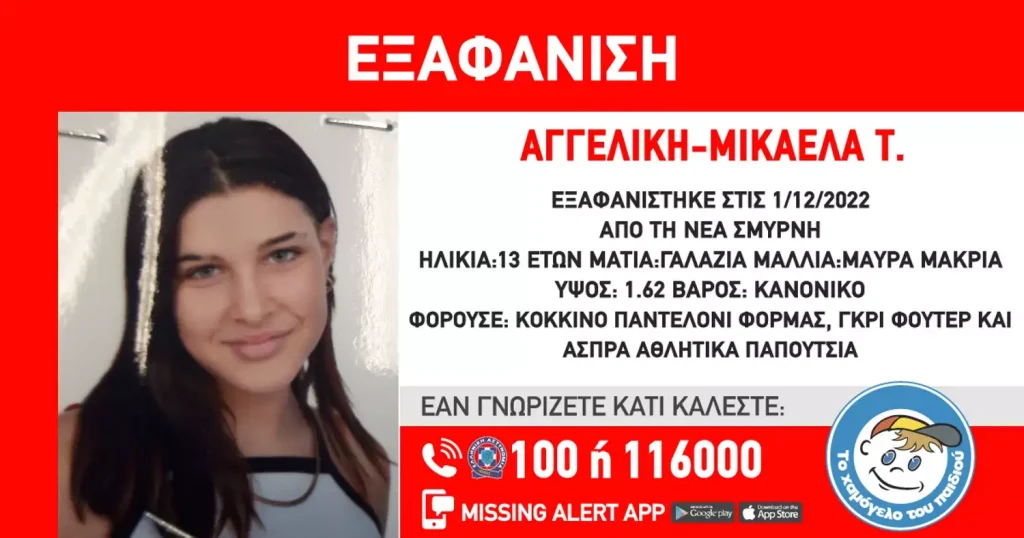 PRONEWS.GR / Εσωτερική Ασφάλεια Χαμόγελο του Παιδιού: Αίσιο τέλος στην εξαφάνιση της 13χρονης Νικολέτας – Βρέθηκε και είναι καλά στην υγεία της 23.10.2023 | 06:18