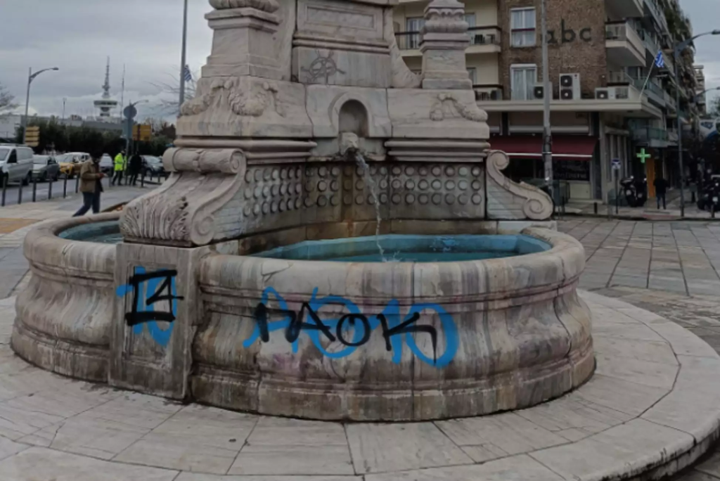 PRONEWS.GR / Εσωτερική Ασφάλεια Θεσσαλονίκη: Άγνωστοι έγραψαν με σπρέι πάνω στο ιστορικό σιντριβάνι στο κέντρο της πόλης (φώτο) 06.03.2024 | 10:02