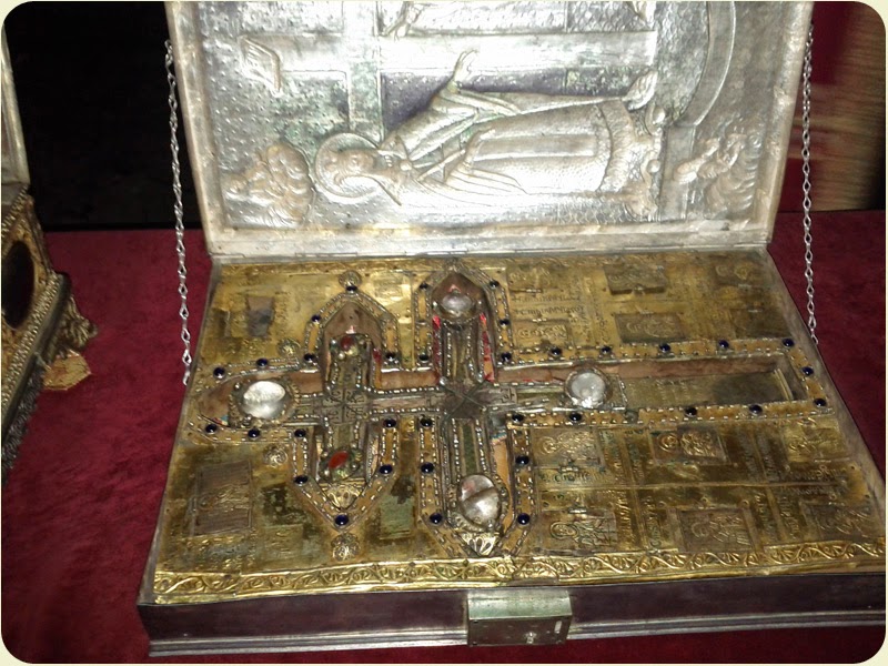 Σταυροθήκη με τεμάχιο Τιμίου Ξύλου και άλλα λείψανα, η οποία αποθησαυρίζεται στην Ιερά Μονή Βατοπεδίου Αγίου Όρους.