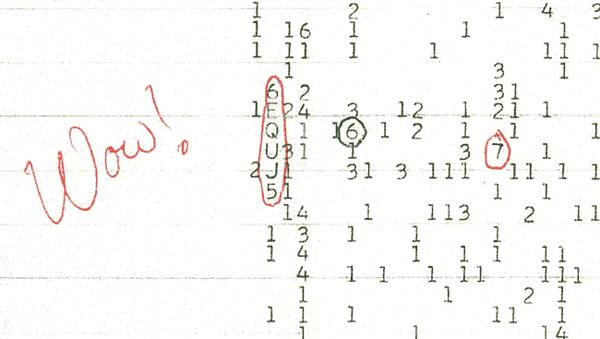 Το καλοκαίρι του 1977, ο Τζέρι Έχμαν, ένας εθελοντής της Υπηρεσίας Αναζήτησης Εξωγήινης Ζωής μελετούσε ραδιοκύματα από το διάστημα, προσπαθώντας να βρει κάποιο ίχνος ζωής. Κάποια στιγμή, τα όργανα που είχε στη διάθεσή του «τρελάθηκαν» και του έδωσαν ένα σήμα, που όμοιό του δεν είχε ξανακούσει. Το σήμα ήταν διάρκειας 72 δευτερολέπτων και, σύμφωνα με τις ενδείξεις, προερχόταν από τον αστερισμό του Τοξότη και από ένα ουράνιο σώμα όπου – προφανώς – δεν είχε πατήσει ποτέ άνθρωπος. Ο ενθουσιασμένος Έχμαν αντέδρασε γράφοντας στο χαρτί του τη λέξη «Wow!» και το σήμα του έμεινε στην ιστορία ως «Σήμα Wow», αν και δεν ερμηνεύθηκε ποτέ.