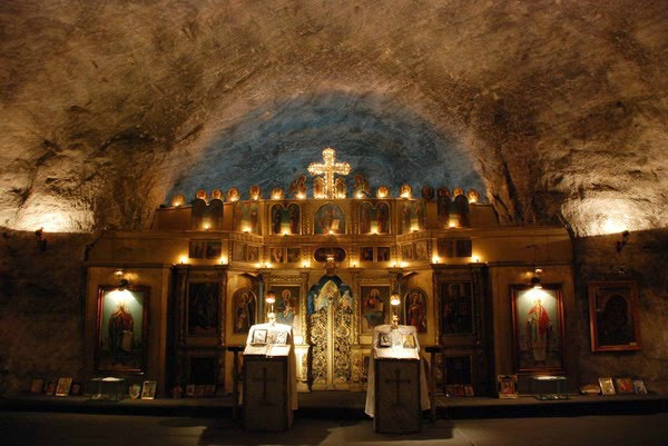 Σε μία υπόγεια σπηλιά στο Τίργκου-Όκνα της Ρουμανίας βρίσκεται ο εντυπωσιακός ναός της Αγίας Βαρβάρας. Η εκκλησία είναι χτισμένη 240 μέτρα κάτω από τη γη στα αλατωρυχεία της αρχαίας Δακίας. Ολόκληρος ο ναός δημιουργήθηκε από ανθρακωρύχους και είναι φτιαγμένος από αλάτι.