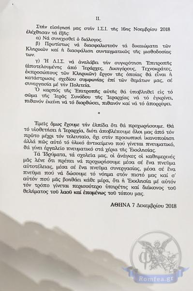 Στο υπόμνημα τονίζεται πως η αρμόδια επιτροπή νομικών και τεχνοκρατών που θα εξετάσει όλα τα θέματα και θα καταλήξει στις προτάσεις της, θα υποβάλλει την πρότασή της στην Ιεραρχία η οποία και θα πάρει τις τελικές αποφάσεις.