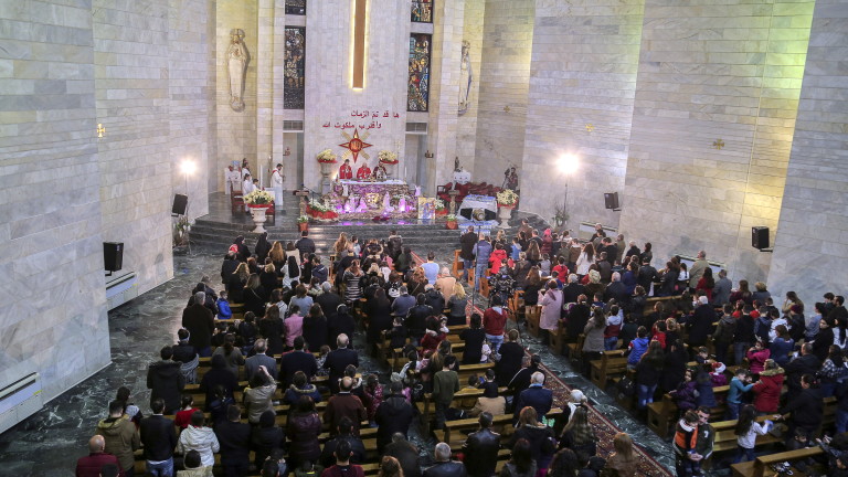 Χριστιανικές ιρακινές οικογένειες με τα παιδιά τους γιόρτασαν τα Ορθόδοξα Χριστούγεννα στην μητρόπολη των Χαλδαίων Μπαάμπντα, ανατολικά της Βηρυτού στο Λίβανο.