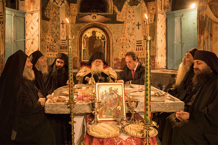Στην πανηγυρική τράπεζα που ακολούθησε, ο Καθηγούμενος της Μονής Αρχιμανδρίτης Εφραίμ μίλησε για τη σημασία των Χριστουγέννων στη ζωή των πιστών. Τόνισε ότι ο Θεός έγινε άνθρωπος για να κάνει τον άνθρωπο κατά Χάριν θεό. Αυτήν την υψηλή κλήση που έχει ο άνθρωπος για τη θέωσή του, έχει λησμονήσει ο σύγχρονος άνθρωπος γι’ αυτό δυστυχεί και αστοχεί στη ζωή του.
