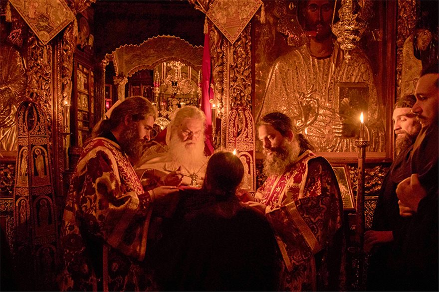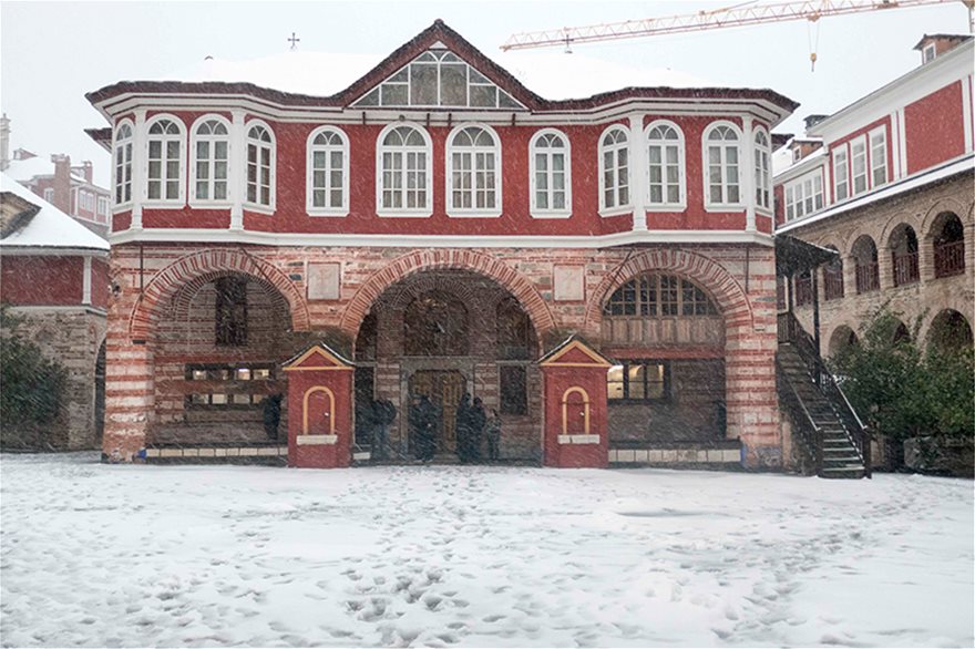 Οι σφοδρές χιονοπτώσεις των τελευταίων ημερών είχαν δημιουργήσει έναν λευκό κλοιό γύρω από την Αθωνική χερσόνησο. Σε ορισμένες περιοχές του Αγίου Όρους το χιόνι έφτανε το ένα μέτρο, πολλές Μονές είχαν αποκλειστεί και οι δρόμοι είχαν κλείσει. Παρά την κακοκαιρία, το χιόνι, τις χαμηλές θερμοκρασίες και την θαλασσοταραχή, που απέτρεψαν πολλούς προσκυνητές από την παρουσία τους, οι αρμονικές ψαλμωδίες των πατέρων κατάφεραν να ανάγουν τις ψυχές των παρευρεθέντων σε κλίμα ευλάβειας και κατανύξεως.