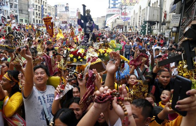 Απίστευτες σκηνές με εκατομμύρια Φιλιππινέζους -ξυπόλητους στην πλειοψηφία- να ακολουθούν την ετήσια λιτανεία ενός μαύρου αγάλματος του Χριστού εκτυλίσσονται στη Μανίλα.