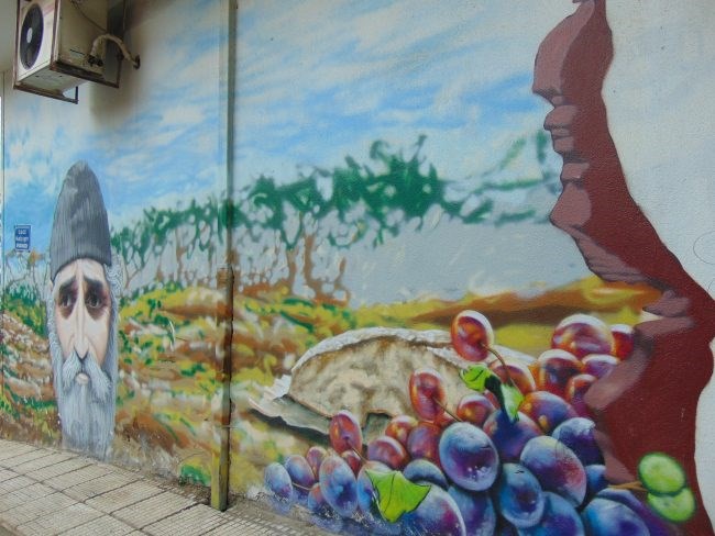 Έμπνευσή του, ωστόσο, για την καλύτερη απεικόνιση της σκέψης του πάνω στον τοίχο ήταν μία ιστορία. “Είχα ακούσει μία ιστορία του γέροντα. Κάποτε είχε πει ότι θα πέθαινε από την πείνα και τότε εμφανίστηκε μπροστά του μία γυναίκα η οποία του πρόσφερε σταφύλια με έντονο ροδοκόκκινο χρώμα και ένα πολύ αφράτο ψωμί. Στη συνέχεια της ιστορίας ο Παΐσιος συνάντησε έναν άνθρωπο και τον φίλεψε με αυτά που του είχε δώσει εκείνη η γυναίκα. Λίγο αργότερα, ο γέροντας αντιλήφθηκε ότι η μορφή της γυναίκας ήταν η Παναγία”.