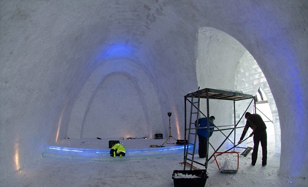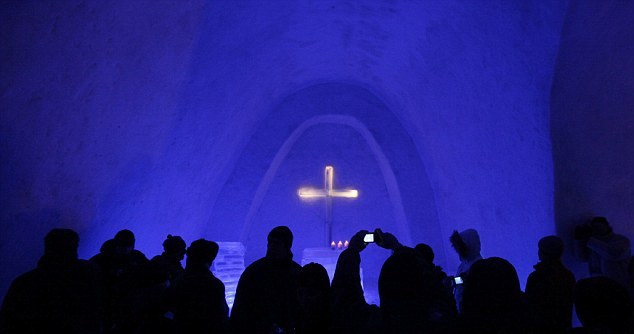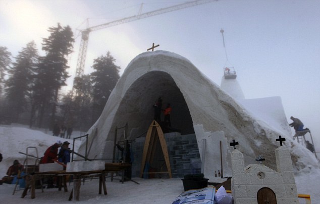 Ο πρωτότυπος αυτός τόπος λατρείας έχει μήκος σχεδόν 20 μέτρα, ενώ για την περάτωση αυτής της ιδιότυπης κατασκευής απαιτήθηκαν 1.388 κυβικά μέτρα χιονιού!