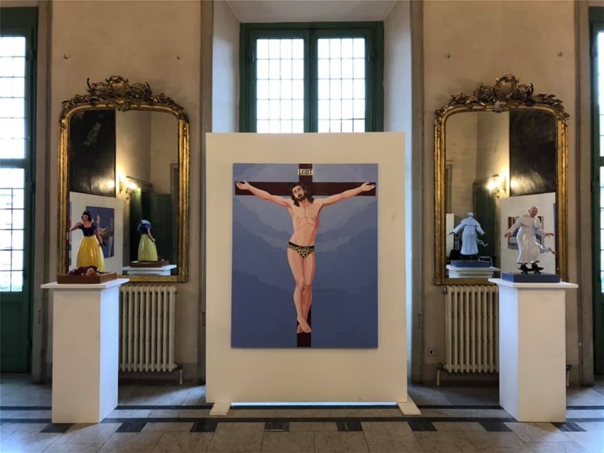 To Facebook λογόκρινε τις εικόνες από την έκθεση του Ιταλού καλλιτέχνη Τζουζέπε Βενετσιάνο στη Μάσα της Καράρας (βόρεια), στην οποία παρουσιάζονταν μία σειρά από προκλητικούς πίνακες, μεταξύ των οποίων και η εικόνα ενός Χριστού ΛΟΑΤΚΙ, που φορά ένα ‘λεοπάρ’ εσώρουχο και που ο ίδιος ο καλλιτέχνης δηλώνει πως «μπορεί κάλλιστα να θεωρηθεί ένας Χριστός ομοφυλόφιλος».