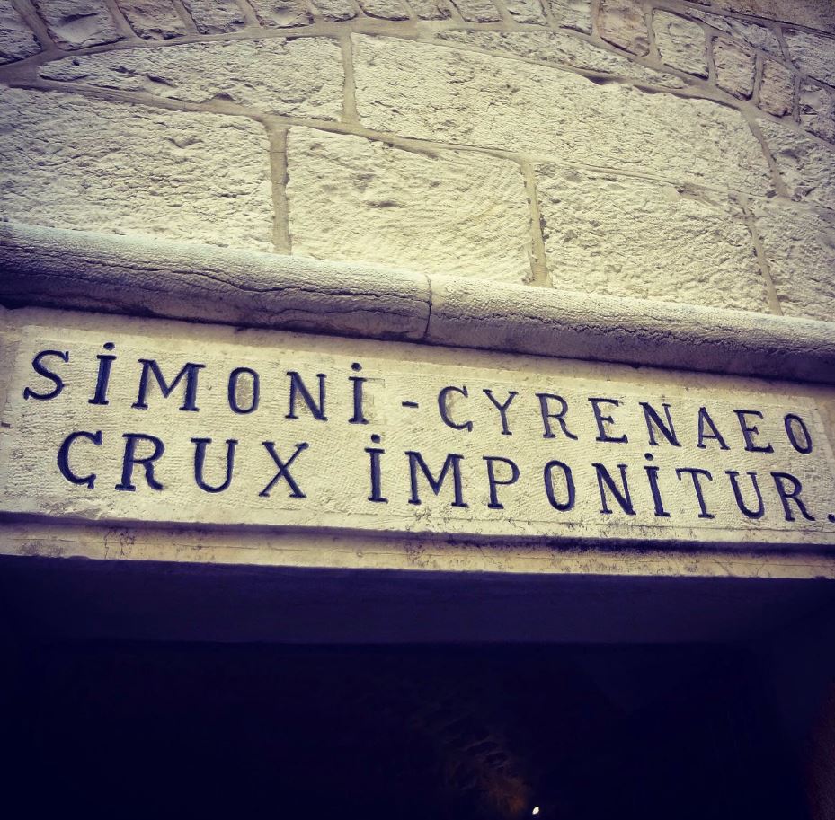 Η ιδρωμένη του παλάμη άφησε το αποτύπωμά της σε ένα βράχο… Ξαφνικά εμφανίσθηκε ένας γεροδεμένος αγρότης που επέστρεφε στο σπίτι του από τη δουλειά, με τα δύο του παιδιά. Ήταν ο Σίμωνας, ο Κυρηναίος. Οι Ρωμαίοι στρατιώτες δεν έχασαν την ευκαιρία και του έδωσαν την εντολή να κουβαλήσει εκείνος τον Σταυρό του Ιησού. Ο Σίμωνας πήρε στους ώμους του τον βαρύ Ξύλο και τον κουβάλησε μέχρι τον τόπο της εκτελέσεως.