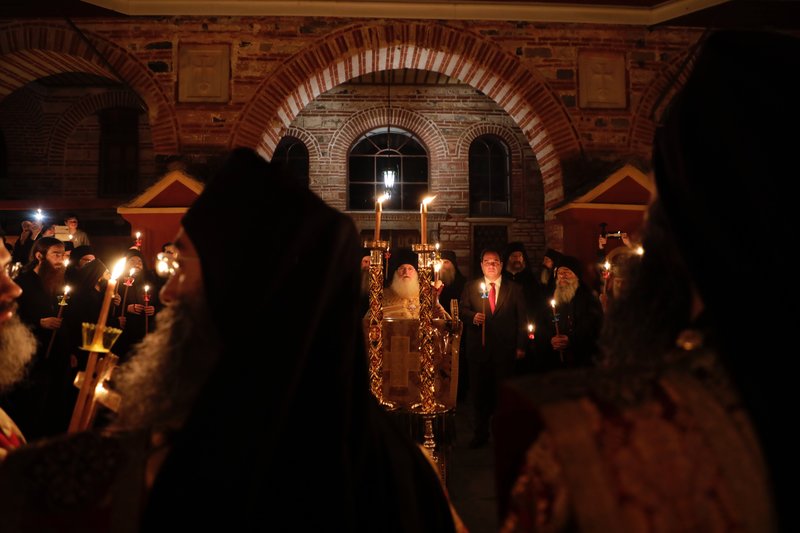 Υπό το φως των κεριών, οι χοροί των ψαλτών και το τελετουργικό, που παραμένει αμετάβλητο αιώνες τώρα, δημιούργησαν κατανυκτική ατμόσφαιρα για τους χιλιάδες προσκυνητές, από κάθε γωνιά της γης, που έχουν κατακλύσει και φέτος τα μοναστήρια και τα κελιά για να συνεορτάσουν με τους πατέρες αυτές τις ημέρες.