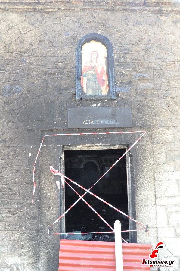 Η εικόνα κυριολεκτικά λάμπει, αν και η φωτιά «αγκάλιασε» όλο το κτίριο δεν κατέστρεψε την εικόνα της Αγίας Κυριακής !