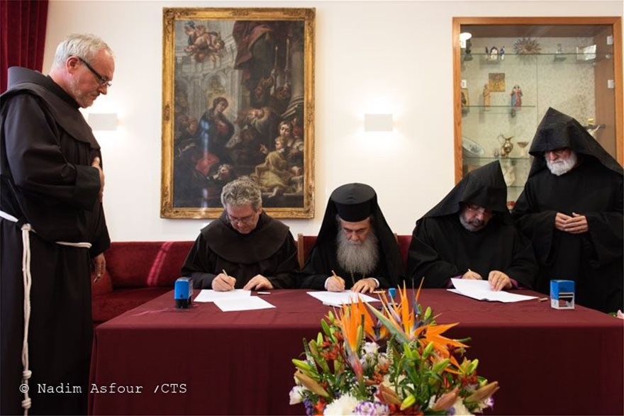 Μετά την υπογραφή της σημερινής συμφωνίας, που έλαβε χώρα στο μοναστήρι των Φραγκισκανών, ο Πατριάρχης Ιεροσολύμων Θεόφιλος έκανε λόγο για επιβεβαίωση της πρωτοβουλίας που έχει ληφθεί πριν από μερικά χρόνια για την αποκατάσταση του Ιερού Κουβουκλίου. Η συμφωνία