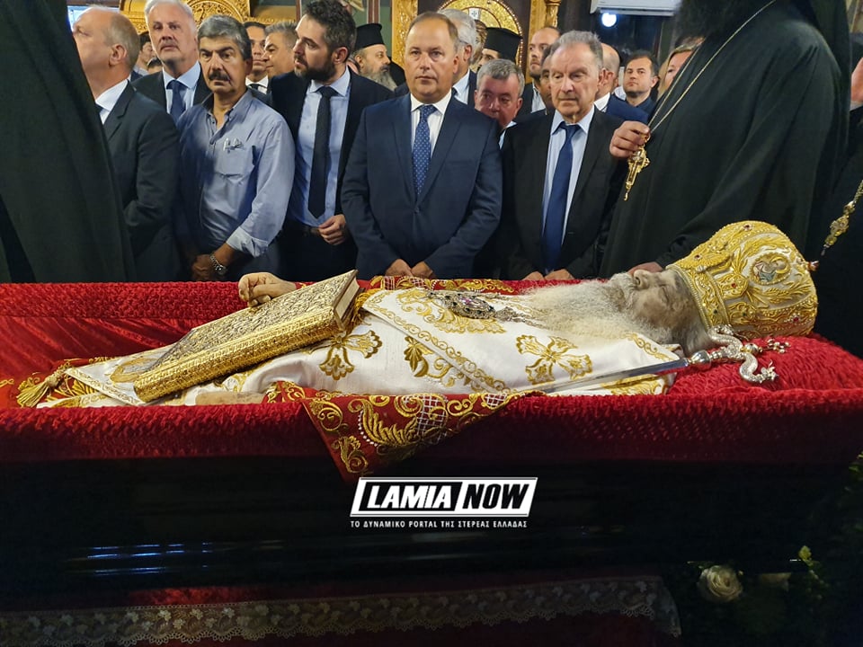 Πλήθος κόσμου, Ιεραρχών και Ιερέων αποχαιρέτησαν τον Μακαριστό Μητροπολίτη Φθιώτιδος κυρό Νικόλαο στο Ιερό Μητροπολιτικό Ιερό Ναό του Ευαγγελισμού της Θεοτόκου Λαμίας.