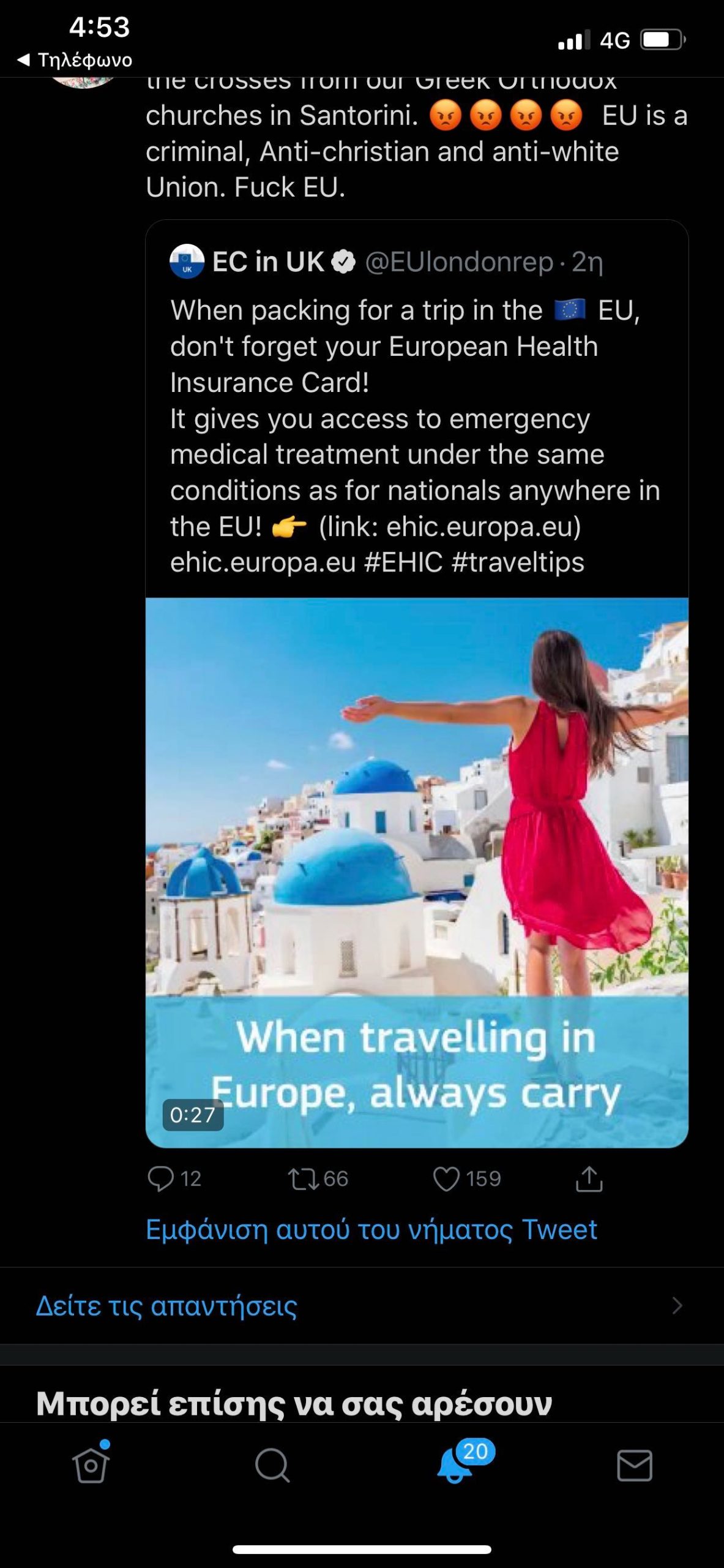 Εξαφανίζουν τους Σταυρούς από οπουδήποτε διότι ο Σταυρός προφανώς ενοχλεί. Σε διαφήμιση για μια κάρτα υγείας και συγκεκριμένα της «European Health Insurance Card» για μια ακόμη φορά οι Σταυροί στα εκκλησάκια της Σαντορίνης «έσβησαν».
