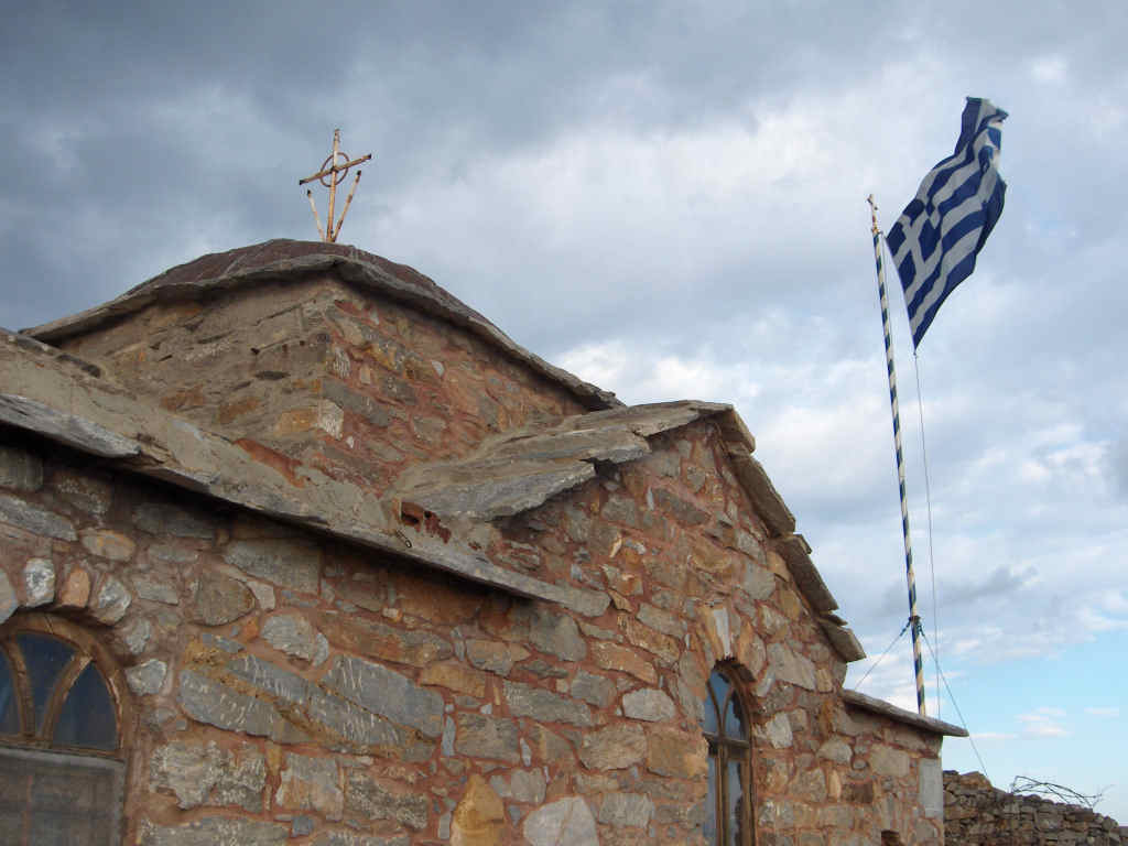 Στα χέρια του κρατούσε δύο τεράστιες σημαίες, τη γαλανόλευκη κι εκείνη του Βυζαντίου. Σε πολύ χαμηλό ύψος, τα Ελληνικά αεροπλάνα πέρασαν πάνω απο τον γκρεμό κουνώντας τα φτερά τους. Η φωνή του μοναχού χάθηκε απο το μουγκρητό των κινητήρων: «Να έχετε την ευχή μου!