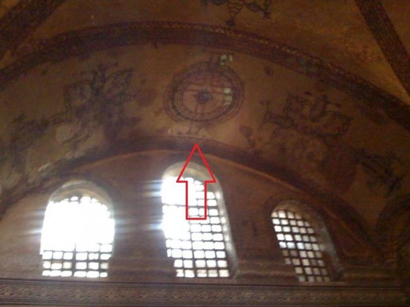 Eνα ασυνήθιστο, αλλά ταυτόχρονα και ανεξήγητο φαινόμενο που παρουσιάζεται στον μεγαλοπρεπή ναό από το καλοκαίρι του 2008,είναι η εμφάνιση βυζαντινών σταυρών στις αψίδες του τρούλου επάνω στον ασβέστη του σοβά με τον οποίο ήταν καλυμένοι εδώ και εκατοντάδες χρόνια.