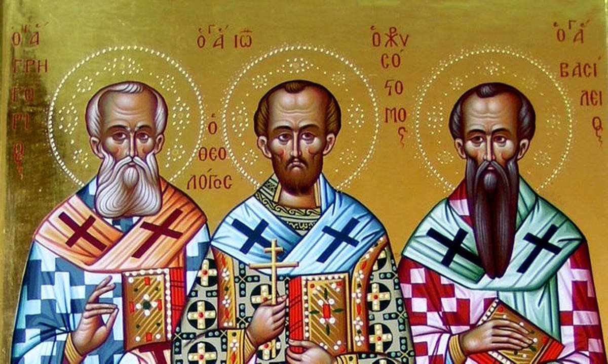 Οι τρεις Ιεράρχες, ήτοι ο Βασίλειος ο Μέγας, ο Ιωάννης ο Χρυσόστομος και ο Γρηγόριος ο Νανζιανζηνός, για τη σοφία τους και τη χριστιανική τους ζωή, η Εκκλησία τους ονόμασε Αγίους και γιορτάζουν ο καθένας ξεχωριστά.