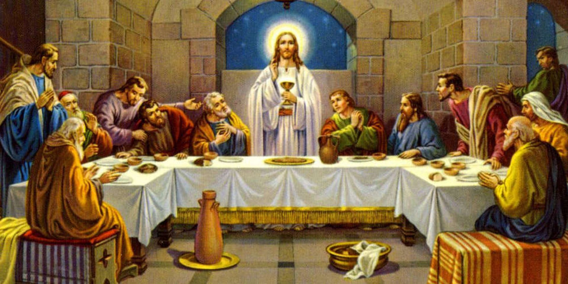Κατόπιν πήρε ψωμί στα χέρια Του και είπε: «Λάβετε φάγετε». Το ίδιο έκανε και με το ποτήρι του κρασιού λέγοντας: «Πιέστε απ’ αυτό όλοι, γιατί αυτό είναι το αίμα Μου, της νέας Συμφωνίας. Αυτό να κάνετε για να Με θυμάστε». Μετά από αυτή τη στιγμή ο Ιούδας, μόλις έφαγε τον άρτο έφυγε και συμφώνησε με τους αρχιερείς να τους Τον παραδώσει.