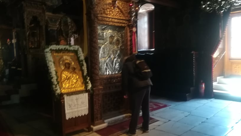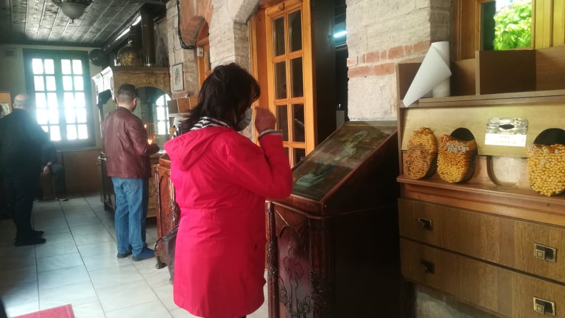 «Οι πιστοί τηρούν τις αποστάσεις. Ασπάζονται τις εικόνες, δε μπορεί κανείς να τους το απαγορεύσει αυτό, αλλά εμείς λαμβάνουμε όλα τα μέτρα καθαριότητας», λέει ο ιερέας της εκκλησίας, πατέρας Χρήστος Δαλαγεώργος.