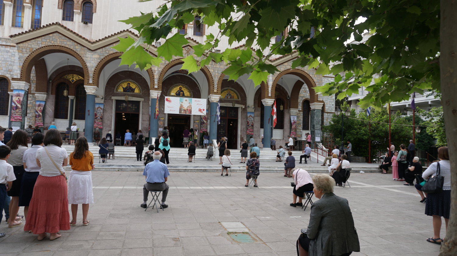 Επαναλειτουργούν σήμερα οι εκκλησίες σε όλη την Ελλάδα και οι εικόνες που βγαίνουν είναι πρωτοφανείς με την Θεία Λειτουργία να πραγματοποιείται ακόμα και στο προαύλιο ενώ σε κάθε αυλή έχουν στρωθεί καρέκλες με αποστάσεις.