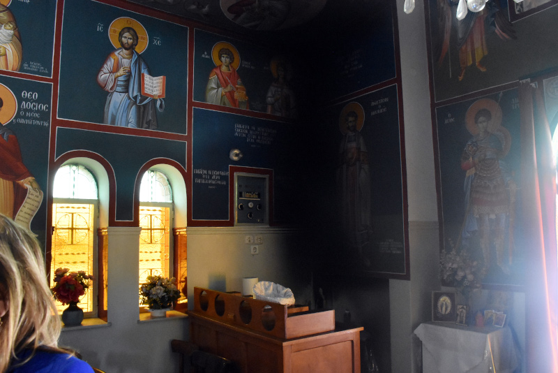 Ένας περαστικός είδε πυκνό καπνό να βγαίνει από το εκκλησάκι του Αγίου Νικολάου και ενημέρωσε τον παπά Γιάννη , ο οποίος διέκοψε τη λειτουργία στην Αγία Τριάδα, πήρε ένα πυροσβεστήρα, έτρεξε στο εκκλησάκι και έσβησε τη φωτιά.