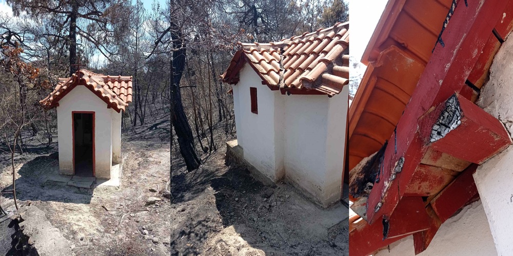 Το εκκλησάκι του Αγίου Ραφαήλ στην καταστροφική πυρκαγιά της Δαδιάς γλίτωσε ως εκ θαύματος από τις φλόγες, οι οποίες πέρασαν…από πάνω του.