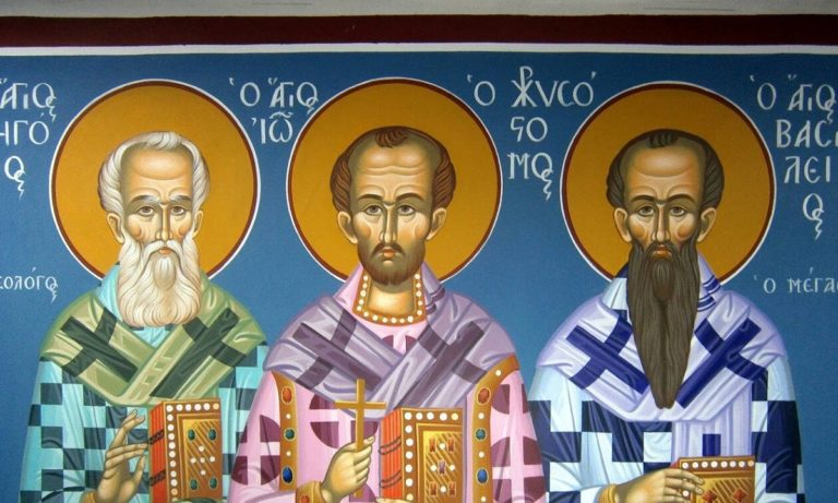 Οι τρεις Ιεράρχες, ήτοι ο Βασίλειος ο Μέγας, ο Ιωάννης ο Χρυσόστομος και ο Γρηγόριος ο Νανζιανζηνός,για τη σοφία τους και τη χριστιανική τους ζωή, η Εκκλησία τους ονόμασε Αγίους και γιορτάζουν ο καθένας ξεχωριστά.