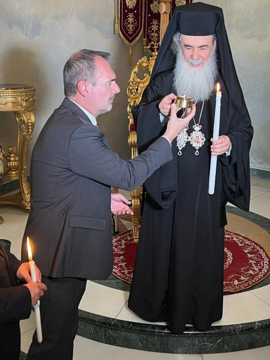 Στην τελετή παρέστη η Ελληνική αντιπροσωπεία με επικεφαλής τον Υφυπουργό Εξωτερικών Ανδρέα Κατσανιώτη ο οποίος στη συνέχεια μετέβη στο Πατριαρχείο για την παραλαβή του Αγίου Φωτός, από τον Πατριάρχη Ιεροσολύμων Θεόφιλο Γ’.