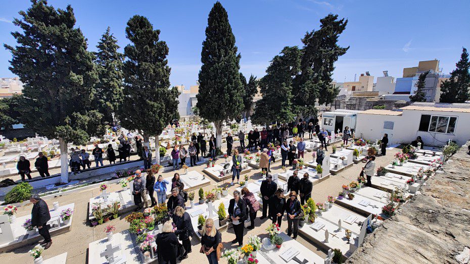 Από νωρίς το πρωί, ο χώρος του Νεκροταφείου γέμισε από κόσμο που προσήλθε για να τιμήσει τους αγαπημένους του, να ανάψει ένα κερί και να αφήσει λίγα λουλούδια στα μνήματα. Κάθε οικογένεια που είχε χάσει έναν δικό της άνθρωπο, στεκόταν σιωπηλή δίπλα του, περιμένοντας τη στιγμή που θα περάσει από μπροστά τους το ιερό σύμβολο του μαρτυρίου και της θυσίας.