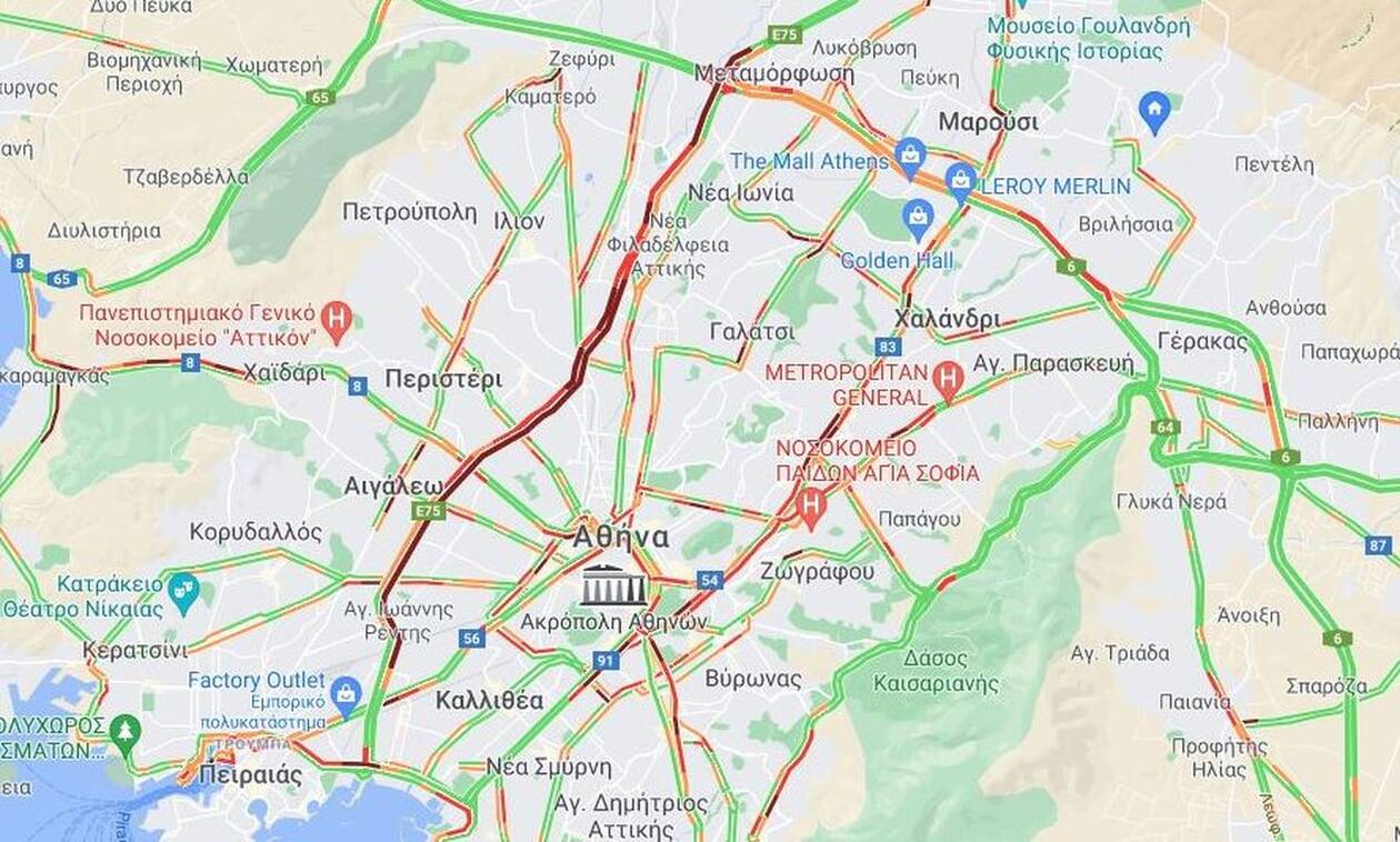 Από το ύψος του Ρέντη μέχρι και τη Νέα Φιλαδέλφεια στην άνοδο του Κηφισού και από τη Μεταμόρφωση μέχρι το κέντρο της Αθήνας στην κάθοδο, από νωρίς το πρωί, οι ταχύτητες των οχημάτων είναι πολύ χαμηλές, με αποτέλεσμα η εθνική να θυμίζει ένα απέραντο πάρκινγκ.