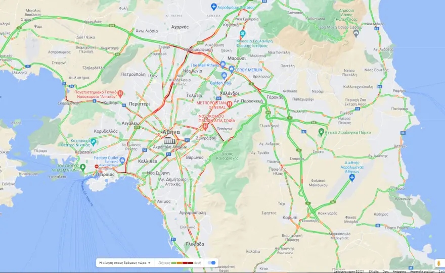 Χαμηλές ταχύτητες εντοπίζονται και επί της λεωφόρου Βασιλέως Κωνσταντίνου, από Χίλτον και επί της λεωφόρου Βασιλίσσης Αμαλίας.