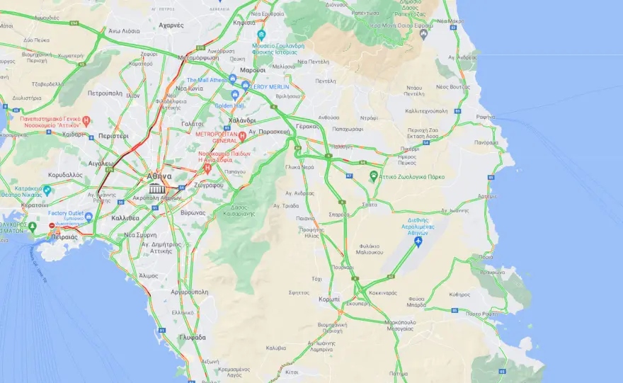 Άκρως αυξημένη κίνηση θα συναντήσουν οι οδηγοί στον Κηφισό, στο ρεύμα εξόδου, από το ύψος της Πέτρου Ράλλη έως και τη Βρυούλων.