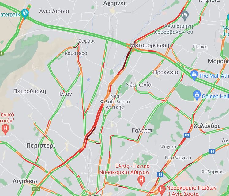 Συγκεκριμένα, μεγάλες καθυστερήσεις παρατηρούνται στην άνοδο από το ύψος του Περιστερίου μέχρι και τη Μεταμόρφωση μετά από τροχαίο που σημειώθηκε στο ύψος της Αττικής Οδού και είχε ως συνέπεια να κλείσει η αριστερή λωρίδα του δρόμου.