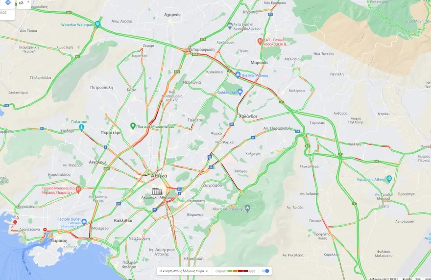 Κίνηση καταγράφεται και επί της εθνικής οδού Αθηνών – Λαμίας στο ύψος του Μοσχάτου στο ρεύμα προς Πειραιά.
