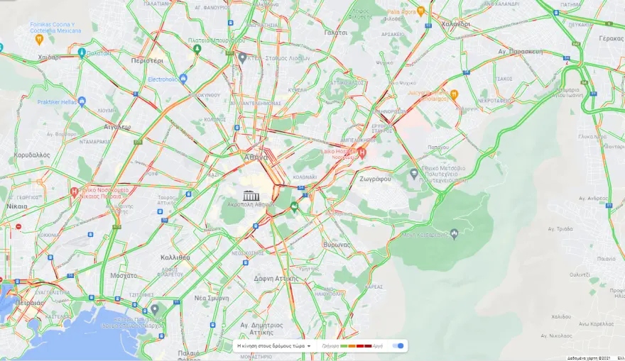 Ιδιαίτερα αυξημένη καταγράφεται αυτή την ώρα η κίνηση στους δρόμους αυτή την ώρα στο κέντρο της Αθήνας.