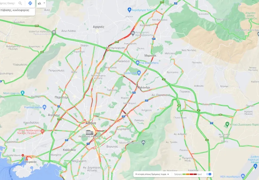 Πυκνή ροή καταγράφεται και στην εθνική οδό Αθηνών – Λαμίας στο ύψος της Μεταμόρφωσης, στο ρεύμα προς Πειραιά.